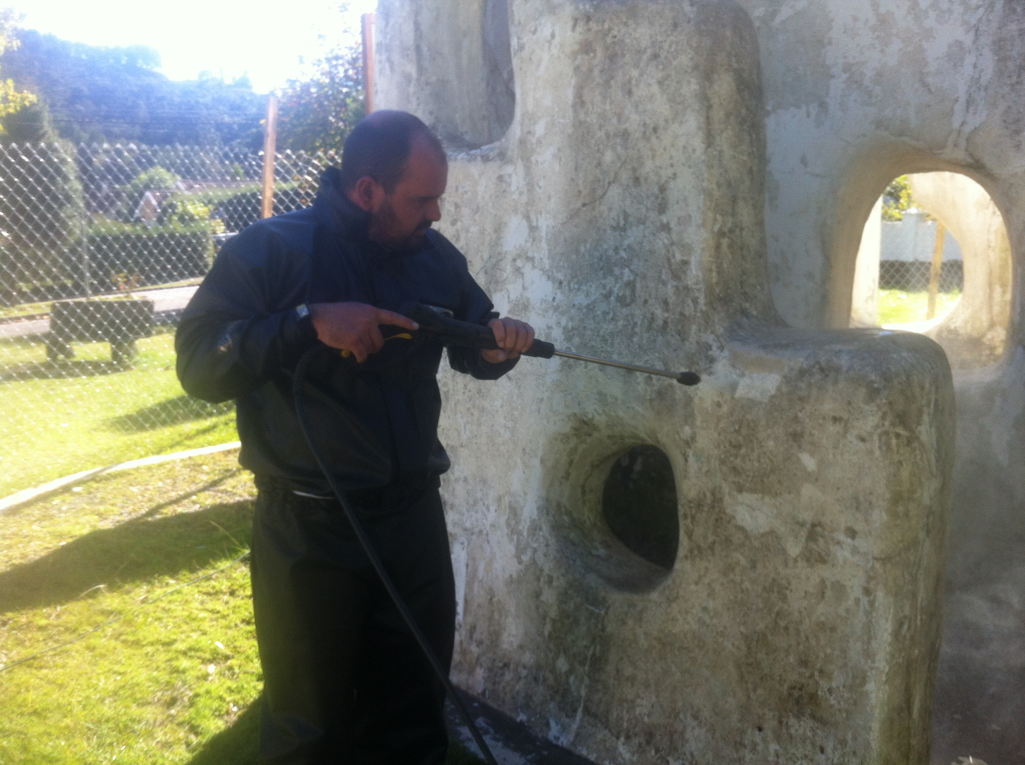 “A obra encontrava-se muito deteriorada, com risco grave de falência estrutural, oferecendo perigo, inclusive, aos frequentadores do espaço. As etapas consistiram, basicamente, em levantamento do estado de conservação, das patologias existentes e das alterações provocadas por intervenções reparativas anteriores, nem sempre com resultados estéticos e estruturais satisfatórios. A intervenção consistiu na eliminação de ações anteriores e recuperação estrutural e estética da escultura, com produtos e técnicas semelhantes às utilizadas pela artista, na sua execução”, relatam os profissionais da equipe de Julio Moraes, que desenvolveram o trabalho.