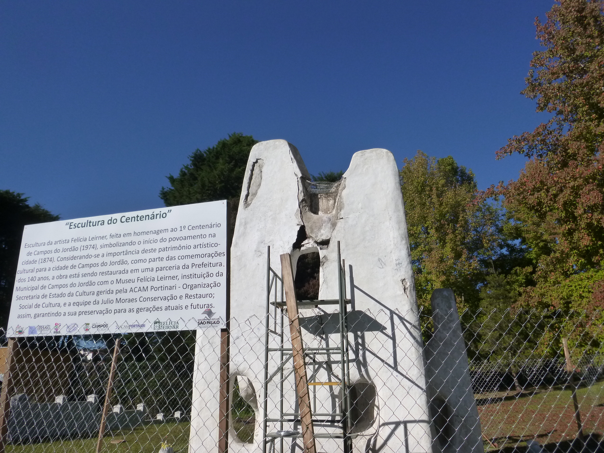 Localizada na praça Nossa Senhora da Saúde, no Bairro do Jaguaribe, em Campos do Jordão (SP), cidade escolhida pela artista Felícia Leirner para ser a sua morada definitiva a partir da década de 1960, a obra “Centenário” foi restaurada e entregue à população no aniversário de 141 anos do município, em abril de 2015. A escultura foi criada e doada em 1974, ocasião em que se comemorava o 1º centenário local.