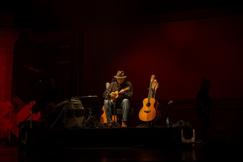 Almir Sater subiu ao palco acompanhado por sua viola de dez cordas, mais conhecida como viola caipira, e apresentou ao público alguns clássicos de sua carreira, como Tocando em Frente, Chalana, Trem do Pantanal e também projetos mais atuais, como AR (Grammy Latino 2016) e +AR (2018), em parceria com Renato Teixeira, além de canções como D De Destino, Bicho Feio, Assim Os Dias Passarão e Venha Me Ver.